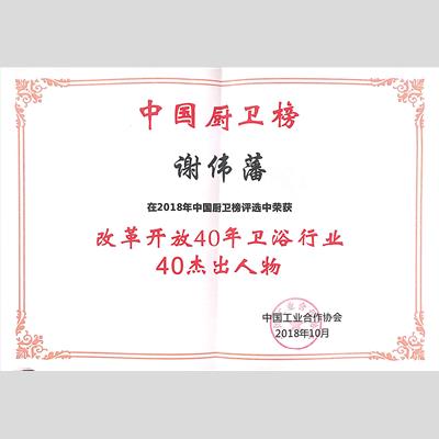 獎(jiǎng) 項(xiàng):改革開放40年衛(wèi)浴行業(yè)40杰出人物