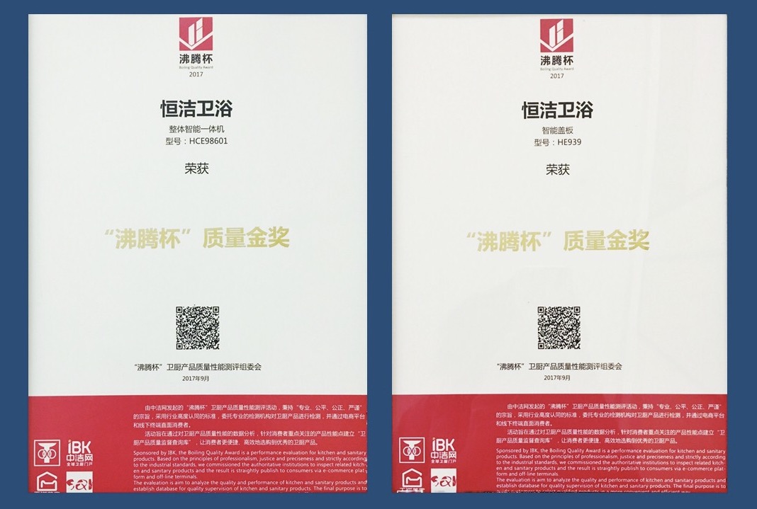 品質(zhì)驕傲!恒潔智能雙Q坐便器榮獲「沸騰杯」質(zhì)量金獎(jiǎng)