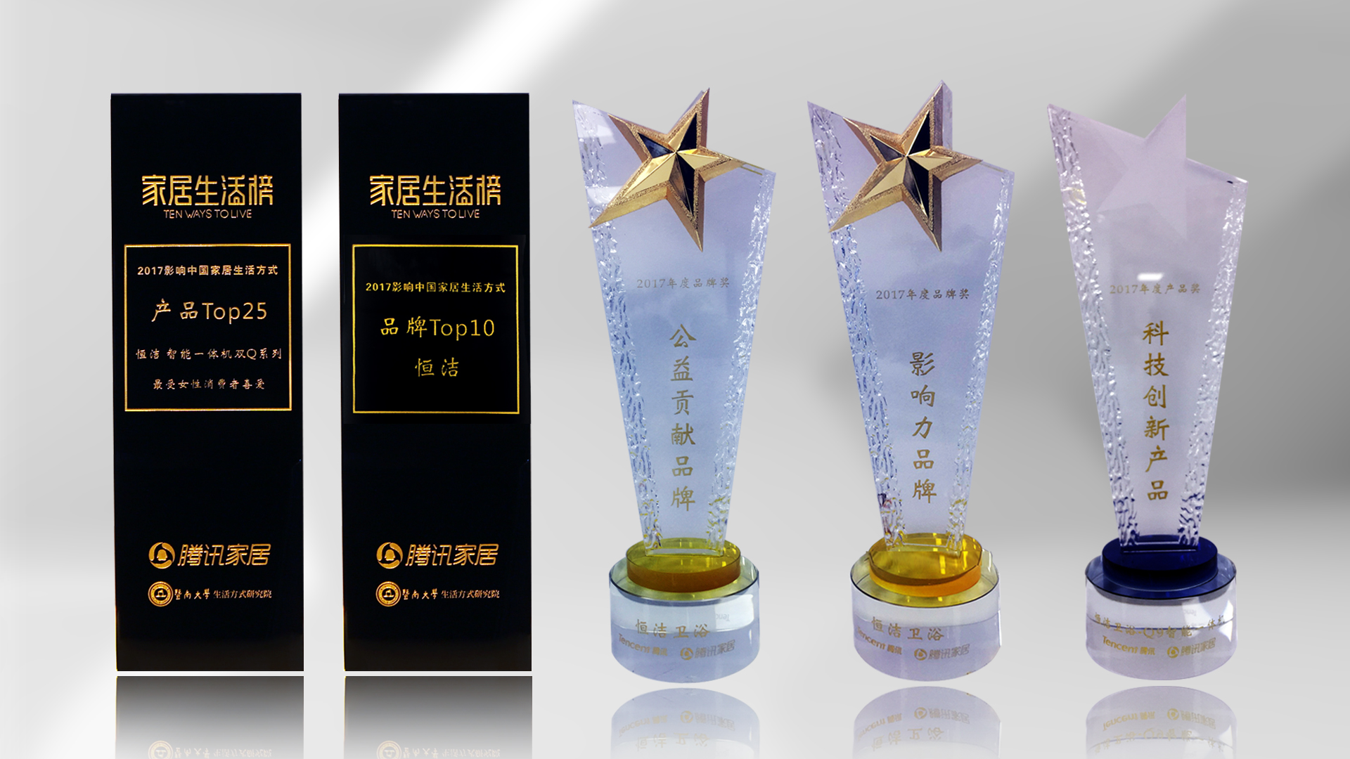 1月6日,由12大行業協會共同舉辦的第五屆中國家居產業發展年會暨2017年度中國家居產業大雁獎頒獎盛典在北京國家會議中心舉行,恒潔不負眾望,再次獲得「大雁獎·2017中國家居產業衛浴領軍品牌」、「大雁獎·2017中國家居產業百強品牌」。