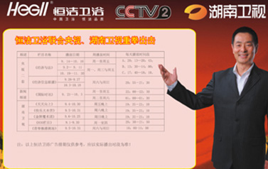 恒潔衛(wèi)浴正式登陸中央電視臺和湖南衛(wèi)視權(quán)威媒體,拉開了全方位立體傳播的大幕。