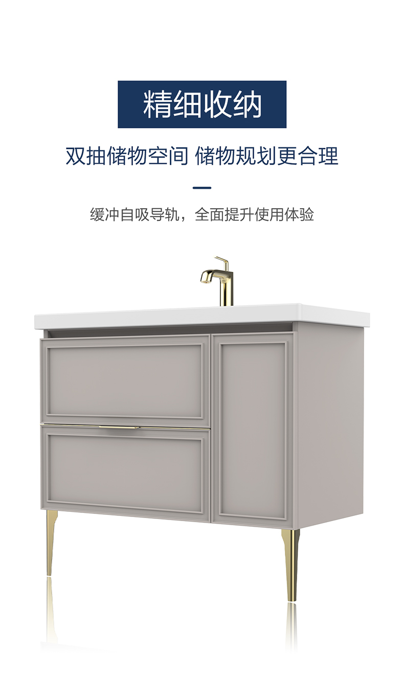 大容量儲物空間:雙抽搭配開門設計,儲物規劃更合理;緩沖自吸導軌,全面提升使用體驗;