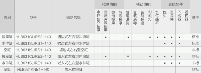 恒潔HLB631系列嵌入式按摩缸