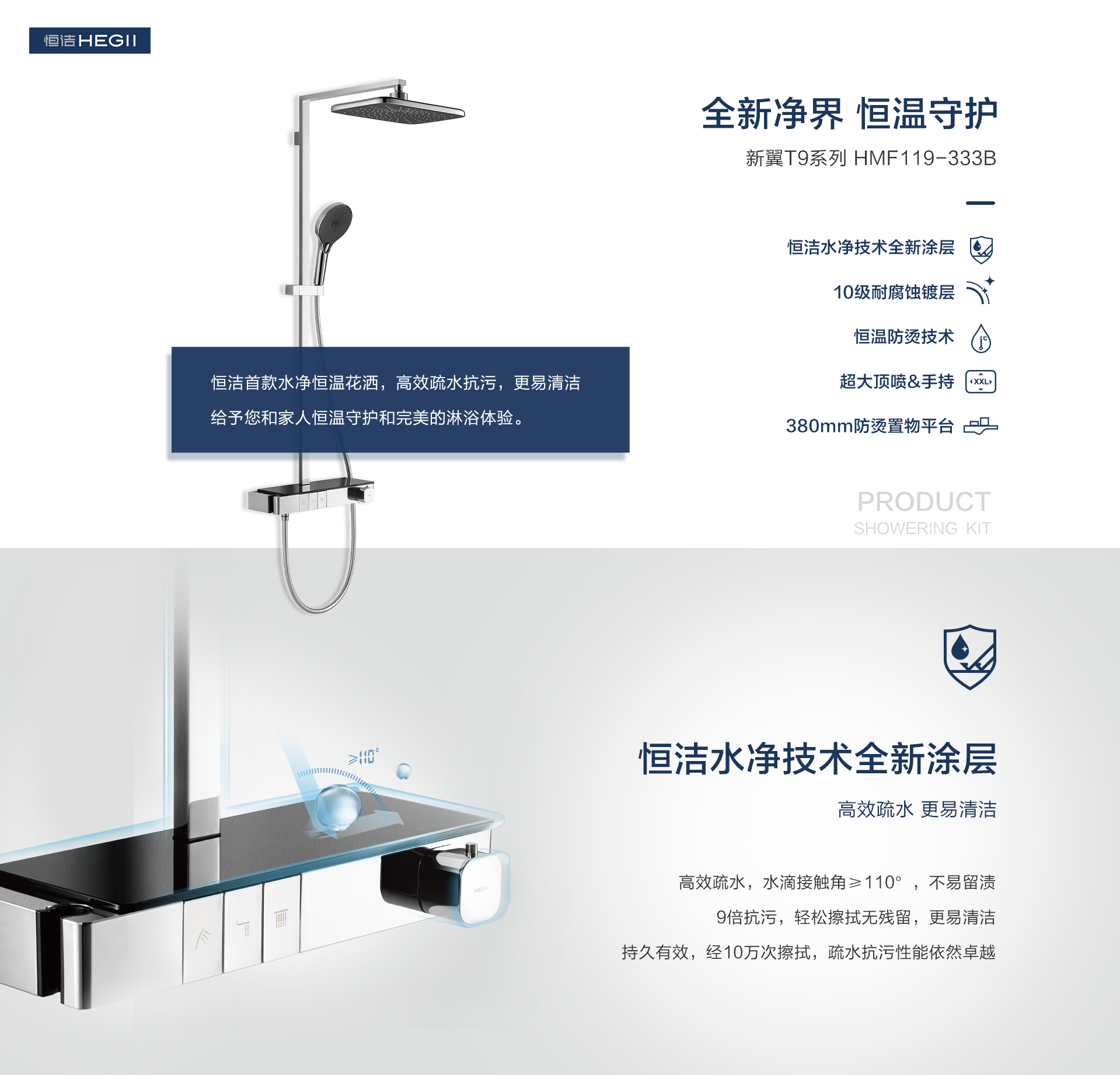 恒潔水凈技術(shù)全新涂層,不易積水留漬
