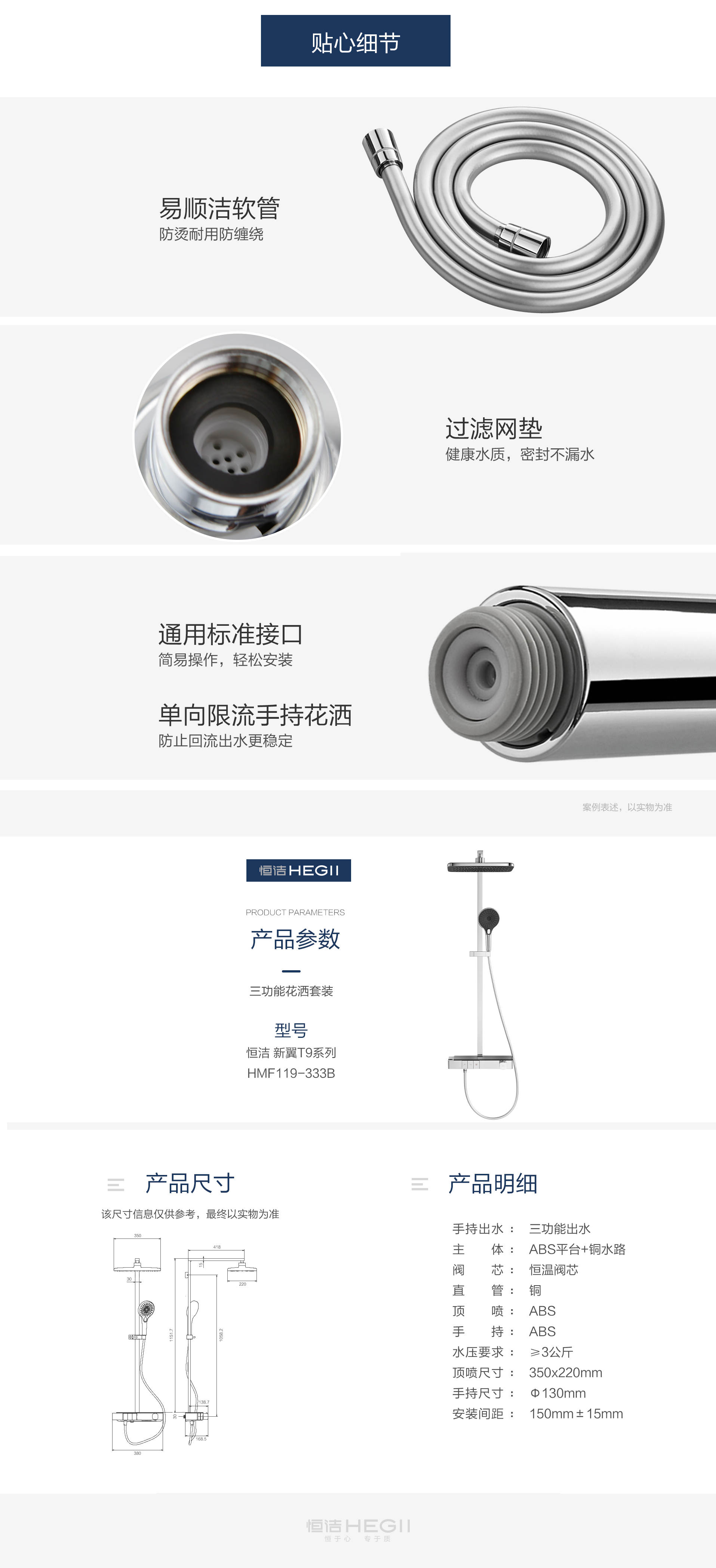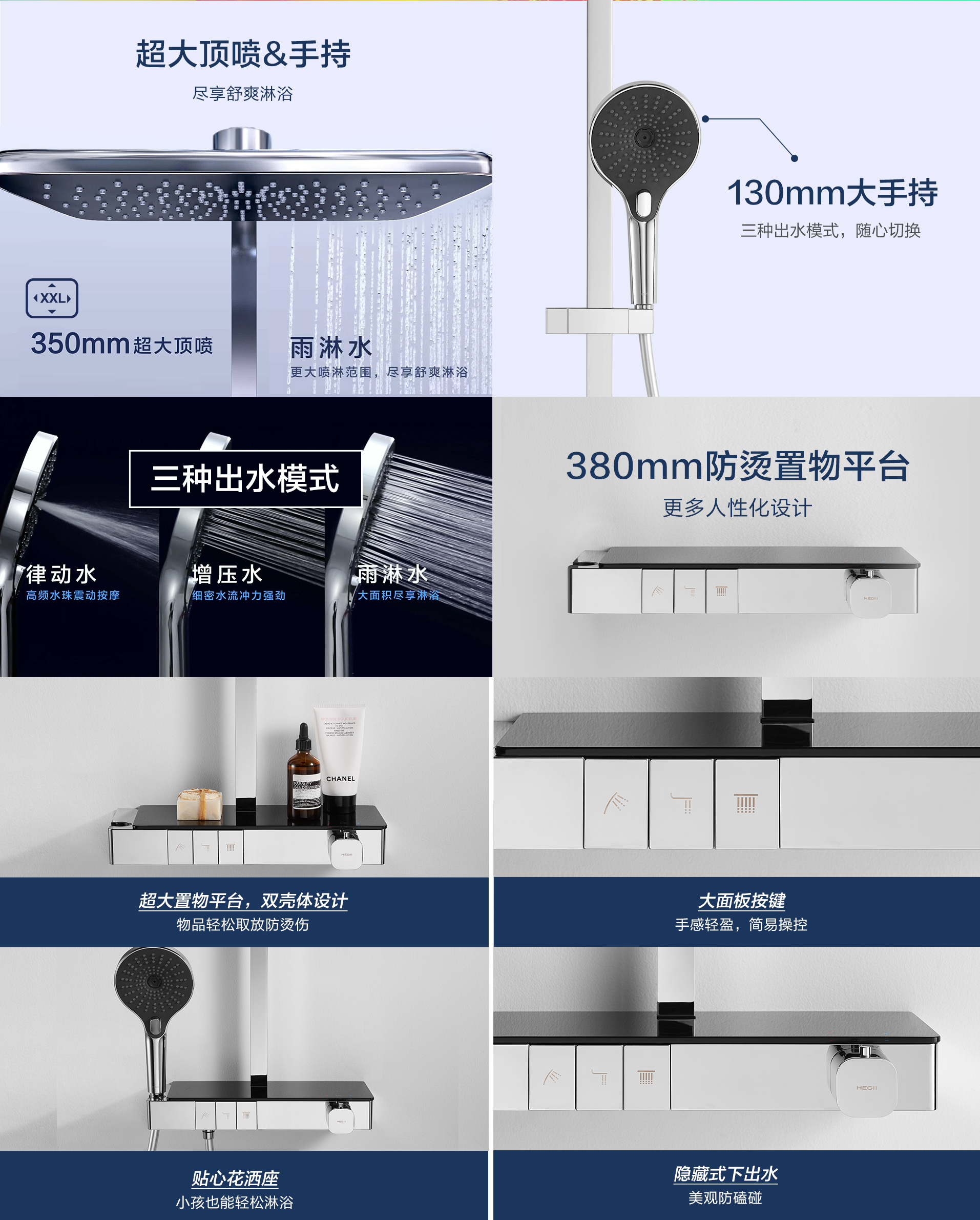 Φ130mm大面板手持,三種淋浴體驗(yàn),多重享受