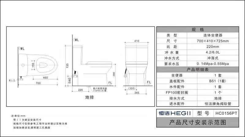 HC0156PT節(jié)水坐便器(地排)